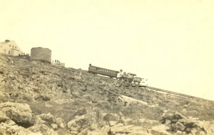 During the building of the cog railway, the workmen figured out a way of “rapid transit” to get back down the mountain using wooden plank “slideboards” that they called “Devil’s Shingles.” The slide-board was about three feet long and would rest lengthwise on the center rail. The braking mechanism was an iron handle that gripped the flange of the rail rightly. A dangerous practice, they were able to slide down the 3 mile long track within minutes. The death of an employee resulted in the railroad discontinuing that type of conveyance.