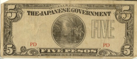 He brought back a small souvenir from his Philippines assignment–a Five Peso Note printed by the Japanese Government. I don’t know how accurate the description of this currency is, but a recent Ebay auction states: “The Japanese Army occupied the Philippines in 1941. Soon after the Japanese government issued its own paper currency to take the place of the Philippines money. This was done to hopefully control the markets and stop guerrillas from buying weapons and other merchandise. Despite threats of torture or being killed, the Philippine people continued to use their own currency. The invasion currency became known as “Mickey Mouse Money” to express contempt of the Japanese by the Philippine people. These are genuine notes seldom seen and are historic pieces of World War II history… One and five dollar denomination bills.”