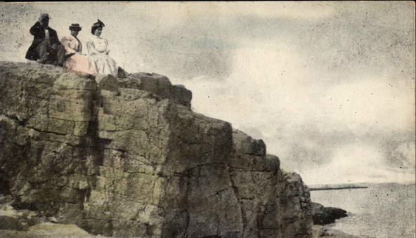 Scan of an old postcard showing Miss Underhill’s Chair, Isle of Shoals, New Hampshire
