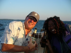 Dale Bloemen and Vanessa-Washington-Johnson (later Bloemen) sailing in 2009. Photograph courtesy of Dale Bloemen, used with his permission.