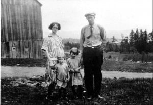 Photograph of the Currier family of Pittsburg NH, one time owners of Camp Otter: Nettie (Witherell) Currier, Andrew “Long Tom” Currier, and their daughters, Ruth and Edna. From the ‘Cabins at Lopstick’ web site, used with permission.