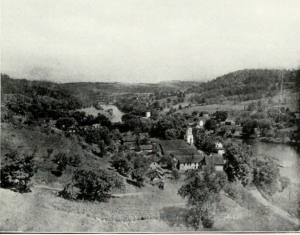 A view of Hartford Village and the White River from the west. From page 21 of “The Old and the New,” an occasional magazine devoted to the institutions and history of the town of Hartford, Vermont (1899), the Internet Archive.