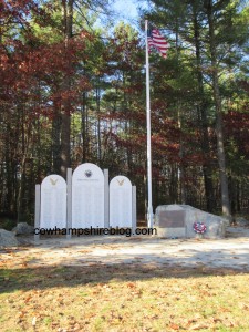 Veteran’s Memorial Park in Merrimack NH showing the World War 2 memorials. Photograph copyright Janice Brown, taken November 2015