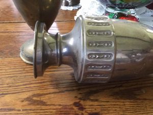 Trench Art tobacco can made from WWI shell. It belonged to New Hampshire native Capt. Nathaniel R. Mason, made for him by Robert W. Arther. Photograph property of his granddaughter, Ellen McGrath, used here with permission.