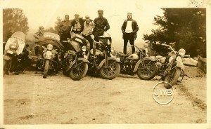 The Weirs, Laconia NH in August 1936 – “Screwball” Motorcycle Club (two years before Bike Week events were moved there). Photograph by B.H. Webster, property of Janice W. Brown.