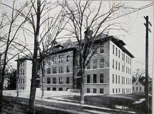 Portsmouth NH High School, built in 1905. Sarah Mildred Long graduated from this school in 1934. From editor’s postcard collection.