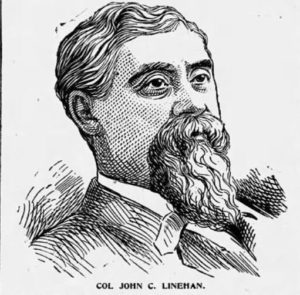 Col John C. Linehan was born in Macroom, county Cork, Ireland 1840; came to American in 1847; member of the band of the 3rd regiment, New Hampshire volunteers, in the civil war; past department commander, G.A.R.; active in republican poitics ever since the war; has held many offices, and is now (in 1895) insurance commissioner of New Hampshire. [from The Boston Globe, 17 March 1895 page 30]