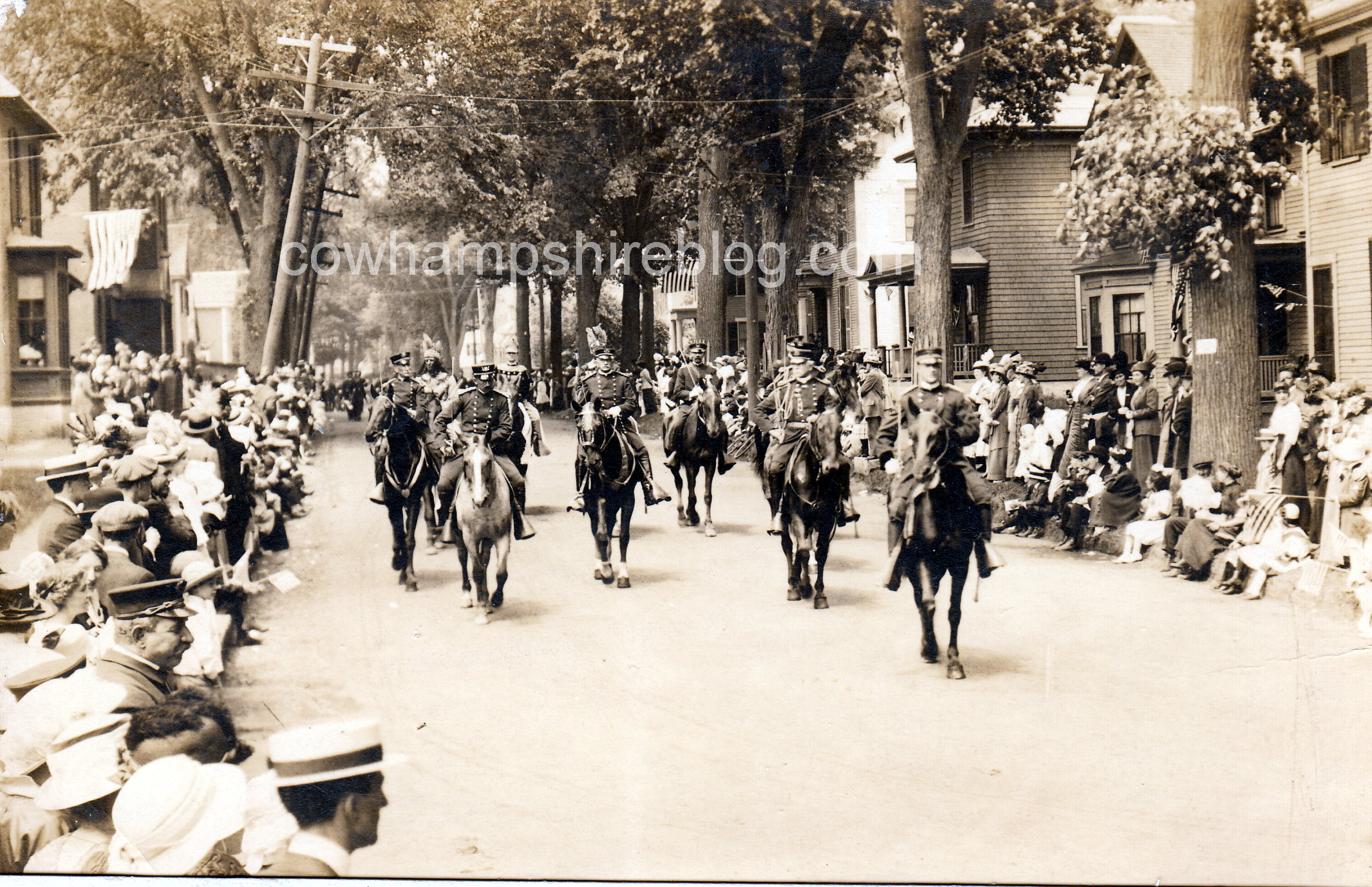 Postcard showing a parade held in Manchester New Hampshire in 1918.
