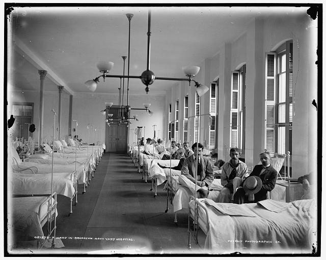 Detroit Publishing Co., Publisher. A Ward in Brooklyn Navy Yard Hospital. New York, None. [Between 1890 and 1901] Photograph. Retrieved from the Library of Congress
