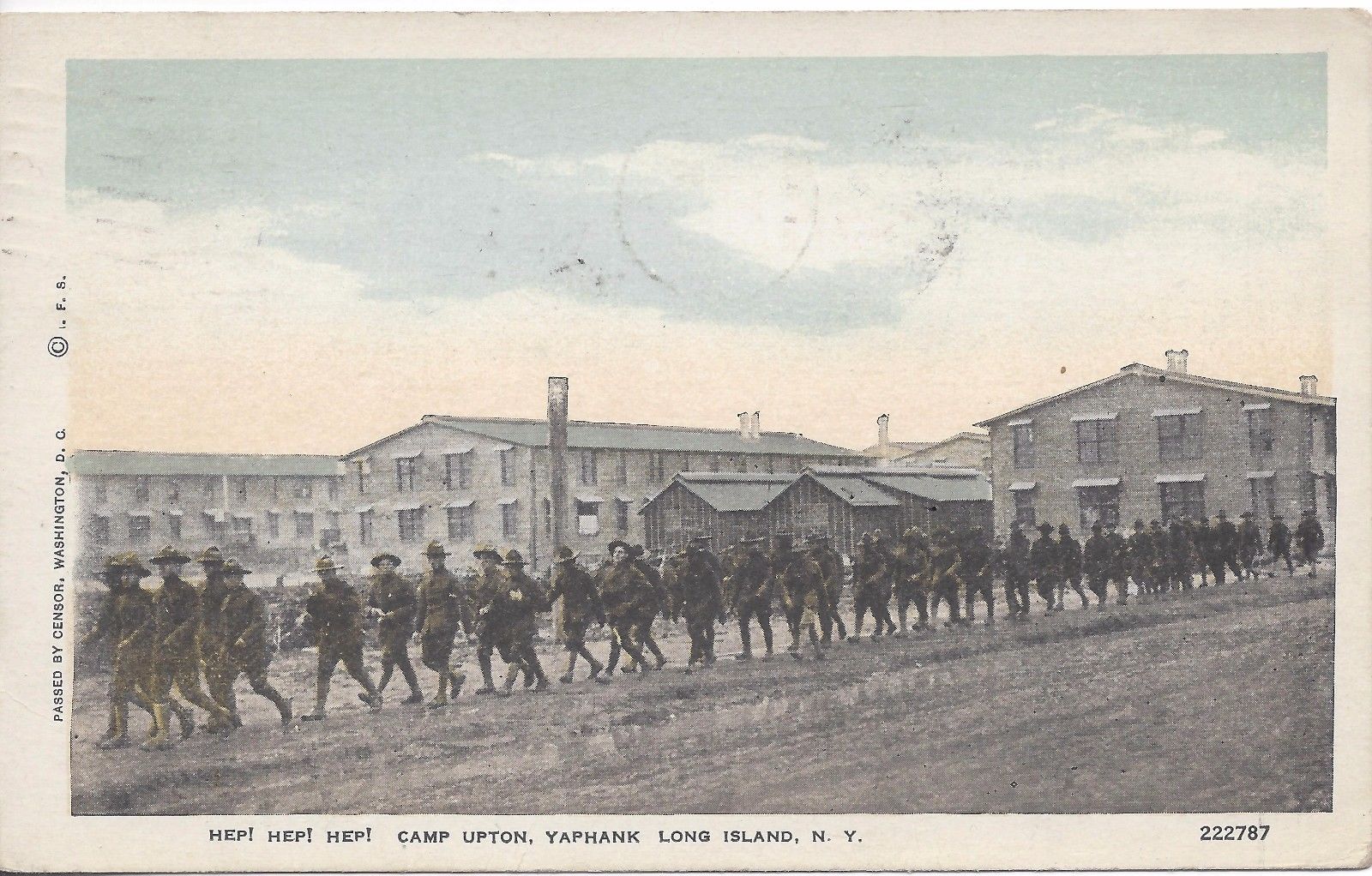 1917 Postcard showing marching soldier-trainees at Camp Upton.