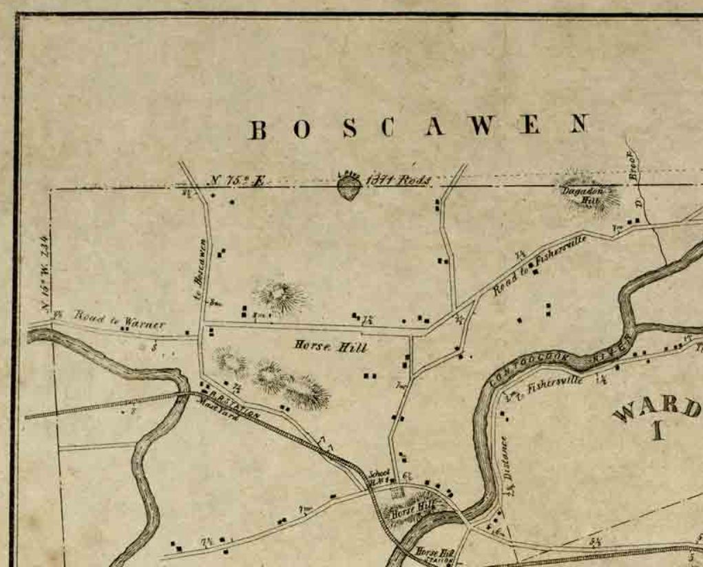 section of Concord NH map showing road to Boscawen and to Warner NH