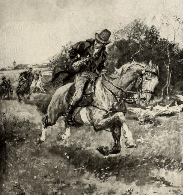 Sketch of highwayman from St. Nicholas magazie for Young Folks,The Refugee, Chapter V. 1910; Internet Archive.