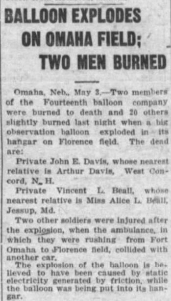 Argus Leader, Sioux Falls SD of 3 May 1918 explosion notice