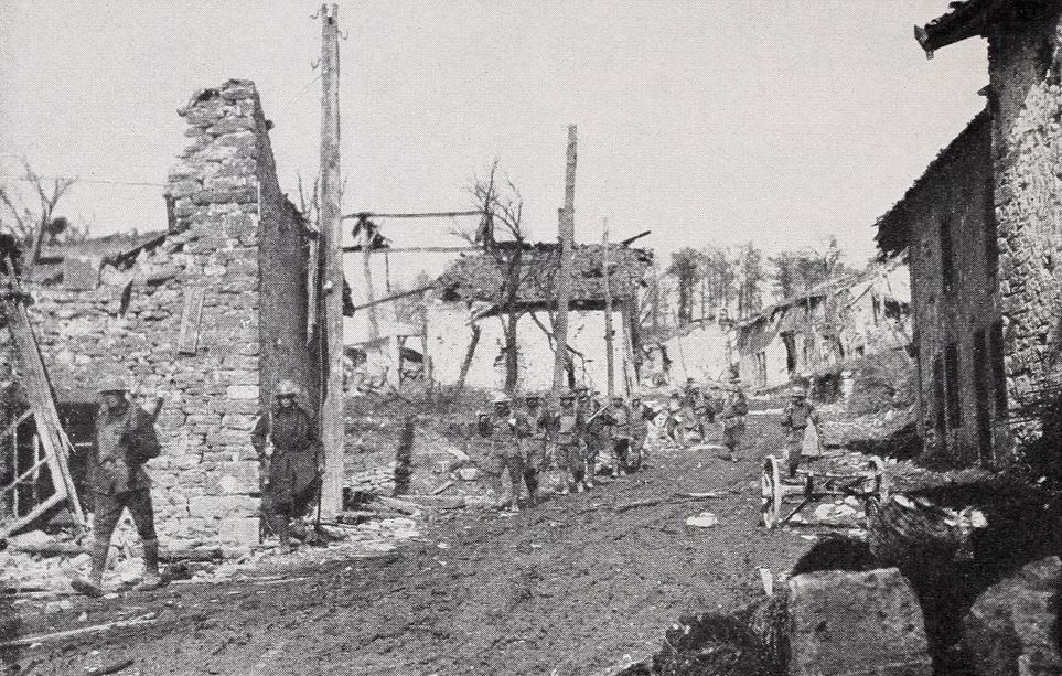 90th Division Troops Passing Through Cunel France, Oct 27, 1918. U.S. Govt.